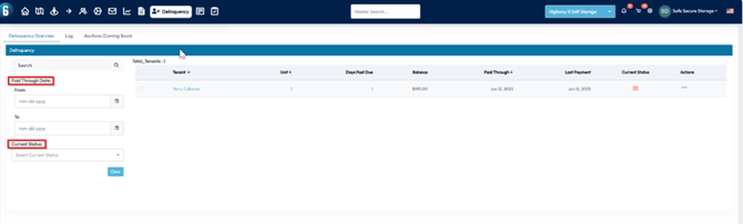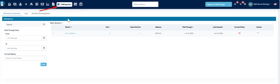 Delinquency Page in the 6Storage Admin Portal