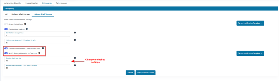 - Click Enable Auto grant for Gate Lockout Units to automate the process
