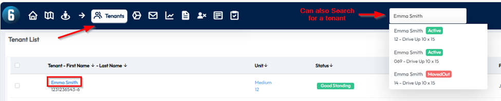- Use the search bar at the top of the screen to find the tenant