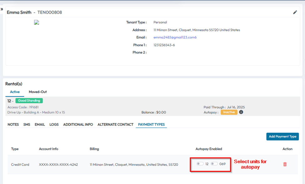 Enabling Autopay for a Tenant in the 6Storage Admin Portal