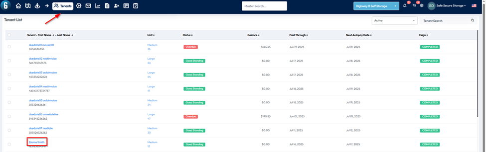 - Or, go to the Tenants tab in the toolbar at the top and find the tenant in the list