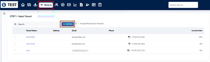 - If the tenant has stored with you before, search for their name using the search bar or select them from the list.