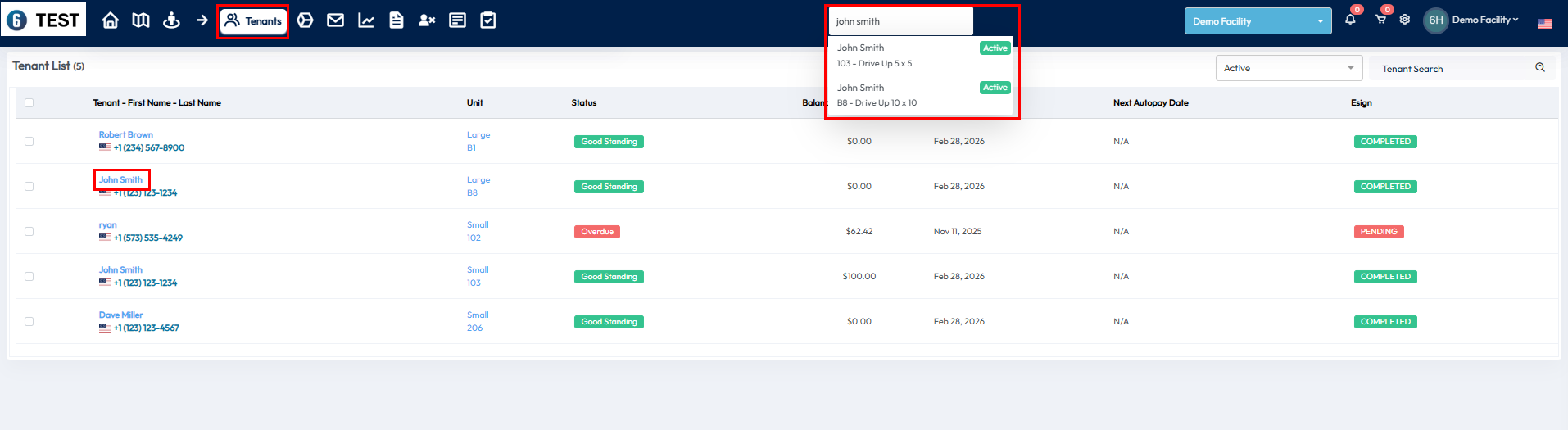 - Use the search bar at the top of the screen to find the tenant