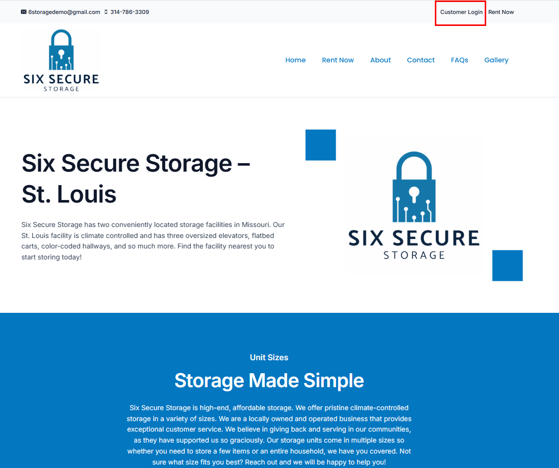 Most 6Storage websites will have an option for the Customer Login in the top right