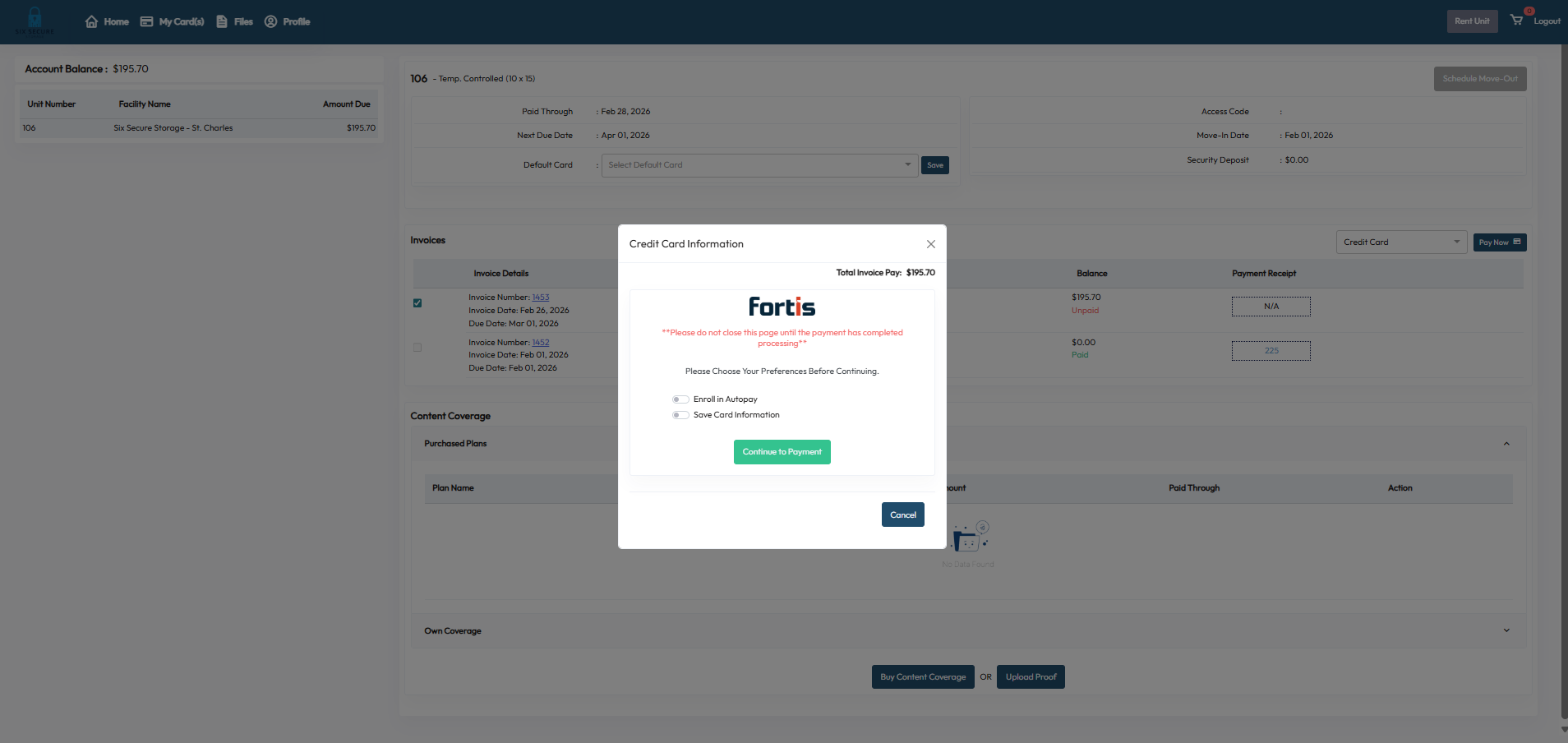 Tenants can pay their bill or enroll in autopay online if the facility is using the 6Storage Rental Hub