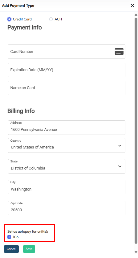 - You can choose to Save Card Information for future use, Enroll in Autopay, or both