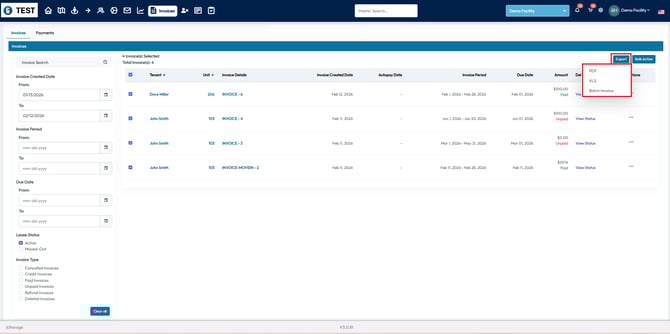 - Invoices can also be exported as a Batch Invoice