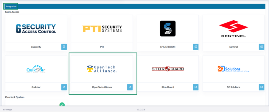 OpenTech Alliance gate access control can be configured separately for each location. Integrating OpenTech Alliance with 6Storage allows tenant access management and scheduling of access hours and entry points.