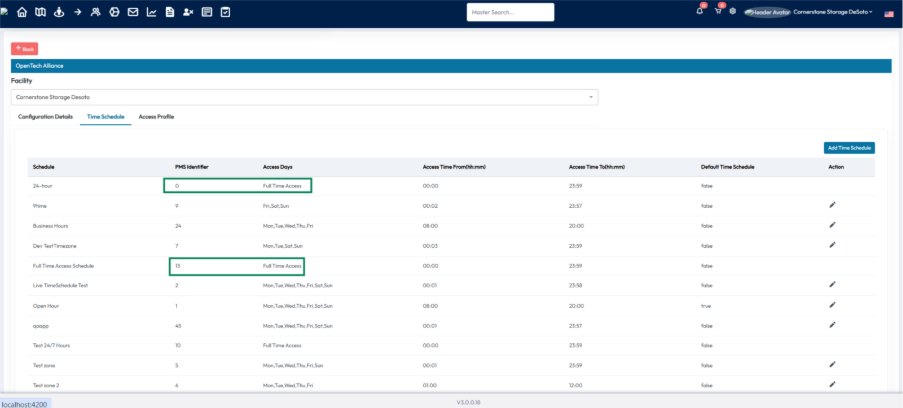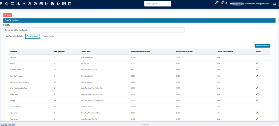- All saved time schedule details are reflected in the OpenTech Alliance console.