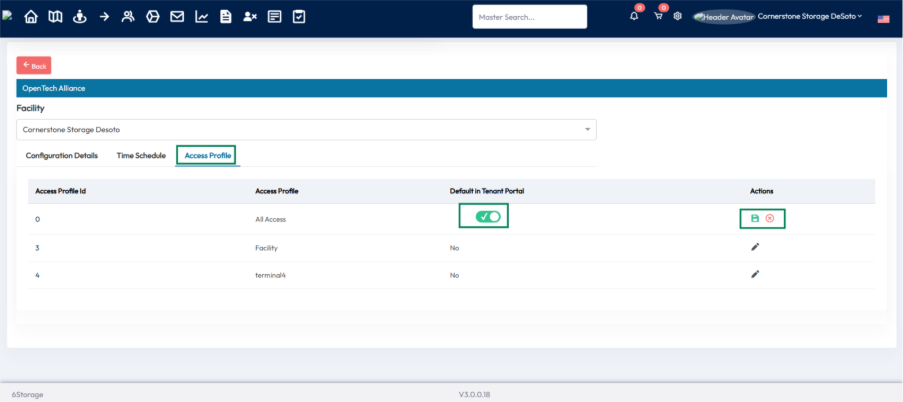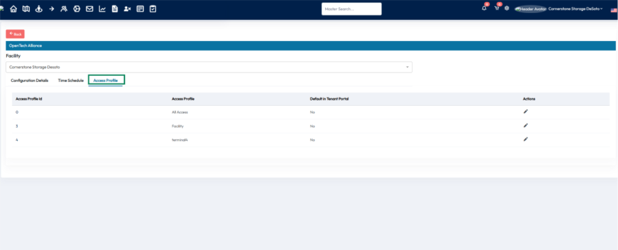 Any access profiles configured in the OpenTech Alliance console are automatically displayed in the 6Storage admin portal under the corresponding location.