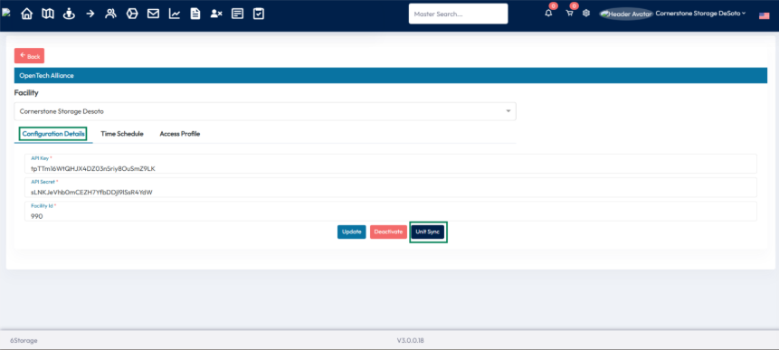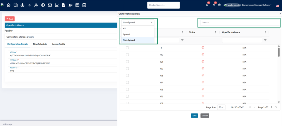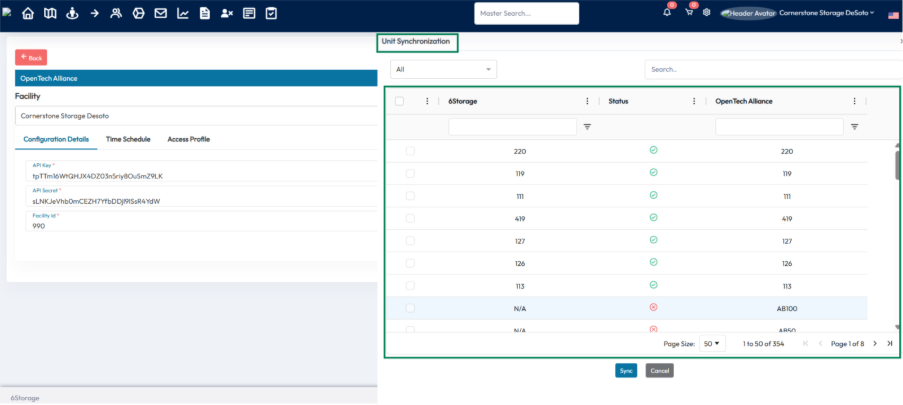 - After selecting, click the “Sync” button to sync the selected 6Storage units with Open Tech.