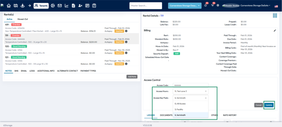 Integrating OpenTech Alliance with 6Storage allows tenant access management and scheduling of access hours and entry points.