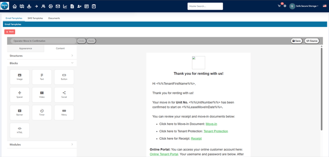 • Most tenant correspondence in 6storage is done through templates.
