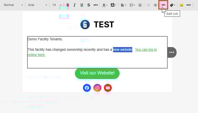 - To add a link in your document simply highlight the text you would like to turn into a link and select the Add Link option