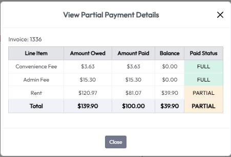 - Click To Open Payment Details — This shows the details of how the partial payment will be applied to each line item