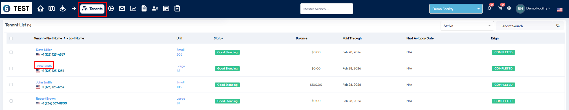 - Or, go to the Tenants tab in the toolbar at the top and find the tenant in the list