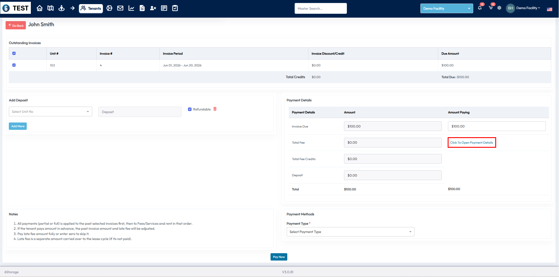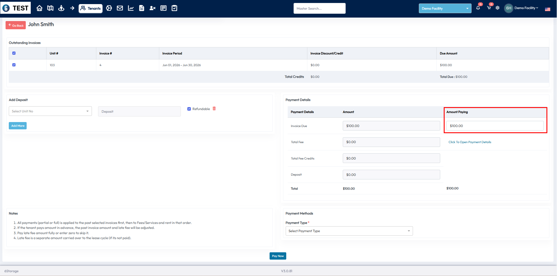 Taking Partial Payments in 6Storage