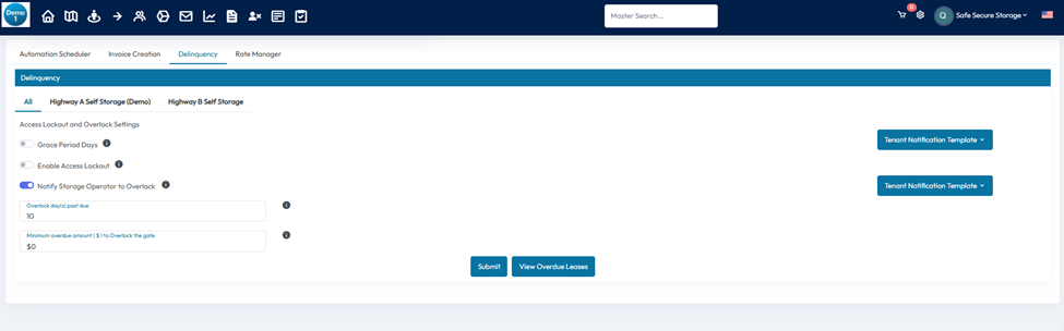 - Delinquent tenants are past due on their rent and the settings here can affect what happens to their account