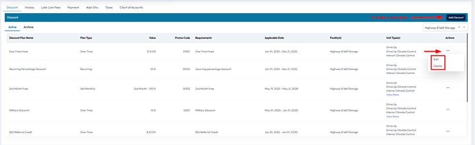 - To edit, delete, or activate existing plans, use the Action button next to each listed discount
