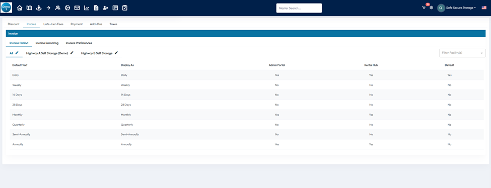 - This allows you to determine what invoice periods are available to be selected by you in the Admin portal and your tenants in the Rental Hub