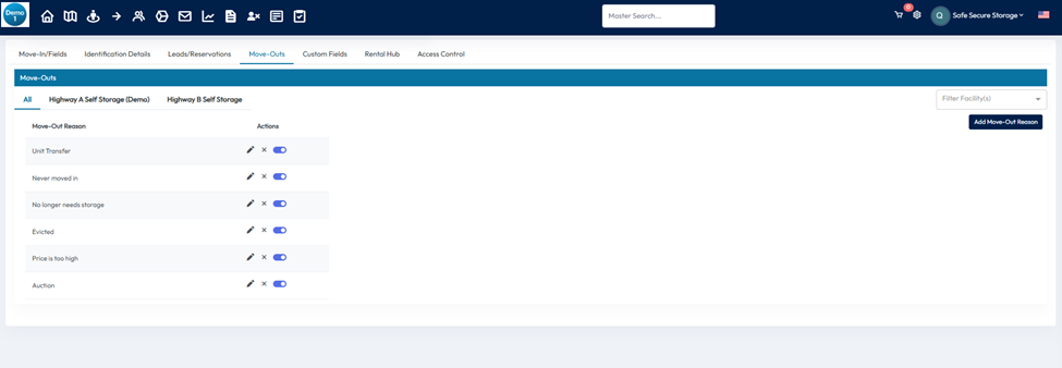 - Move-out reasons that have been saved here will appear for selection during the move-out process