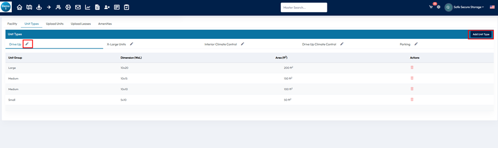 Define and manage the different unit types available at your facility, such as size, access type, and amenities.
