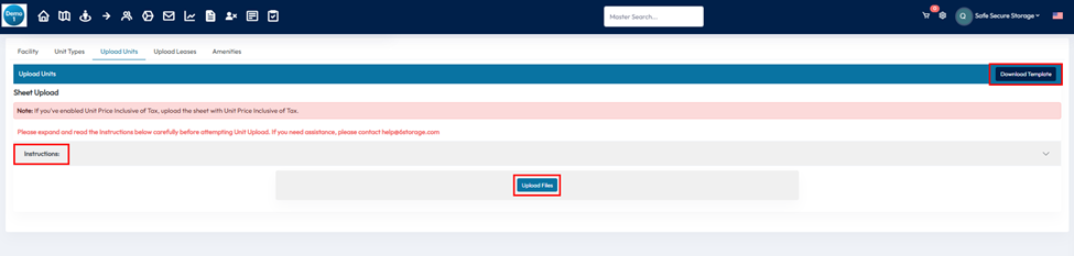You must have the corresponding Facility, Buildings, Unit Types, Unit Groups, and Unit Sizes (WxL) set up in the settings before uploading units.